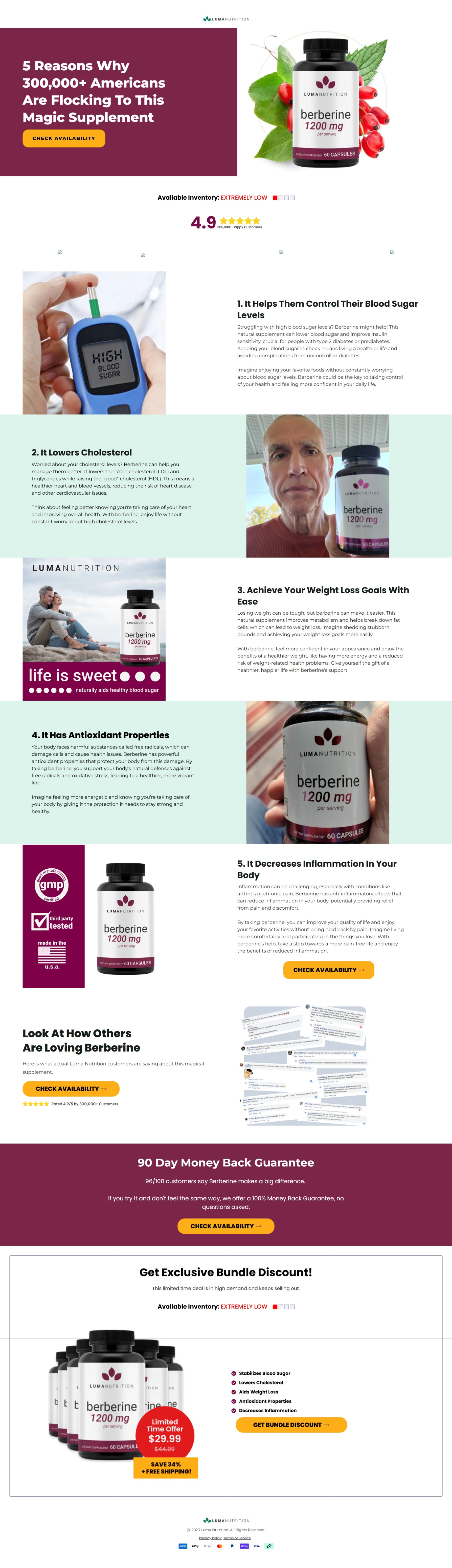 I created a conversion-driven “5 Reasons Why” listicle for Luma Nutrition’s Berberine supplement. This style of page allowed us to combine engaging editorial content with direct-response marketing tactics, making the supplement feel both trustworthy and essential.
